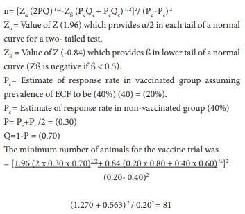 Clinical examination of the animals was undertaken just prior to the inoculation of the vaccine. Animals with a rectal temperature > 39.4 oC were excluded. Irrespective of whether the body temperature was normal or not, animals with enlarged superficial lymph nodes were excluded on suspicion of having been recently infected with ECF. Malnourished animal was also excluded from the trial.