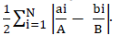 Where A is the sub-group A population and ai represents the subgroup A population in category i, and similarly, B is the sub-group B population and bi is the sub-group A population in category i.