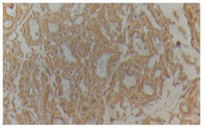 Figure 5: Immunohistochemistry shows the strong and diffuse positiveity of the anti SAA antibody |