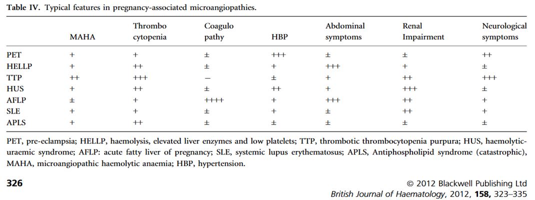 Thrombocytopenia associated microangiopathies occurs in other conditions in pregnancy creating a diagnostic dilemma. Differential diagnoses include; Thrombocytopenic purpura which would present with sensory disturbances with anemia, thrombocytopenia and renal dysfunction as observed in our patient, however, it usually occurs during the first trimester of pregnancy and occurs with normal blood pressure and no proteinuria. Antibody-associated autoimmune diseases may also present similarly, but liver function tests were normal.