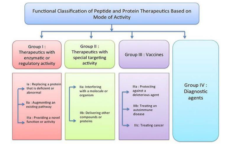 Peptides play a series of vital or essential functions in human body. Regulation of appropriate concentration and activity levels of peptides is mandatory to achieve homeostasis and physical as well as mental health. The purpose of a peptide carries out is dependent on which type of amino acid sequence are present in proteins. As well as the structure or specific shape of peptides. Peptides primarily binds membrane bound receptors and gives respective biological effects. [4]