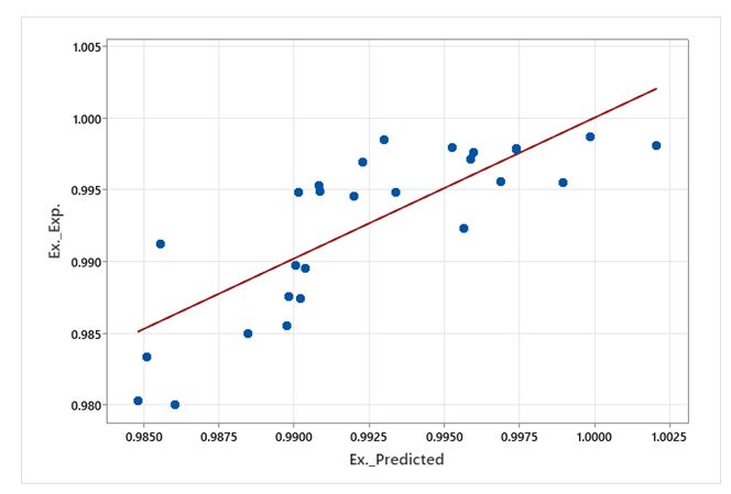 Based on the fixed coefficients presented, the average absolute relative error percentage in the predicted relationship for the extraction yield was obtained as 0.29, it is presented in Tables 7.