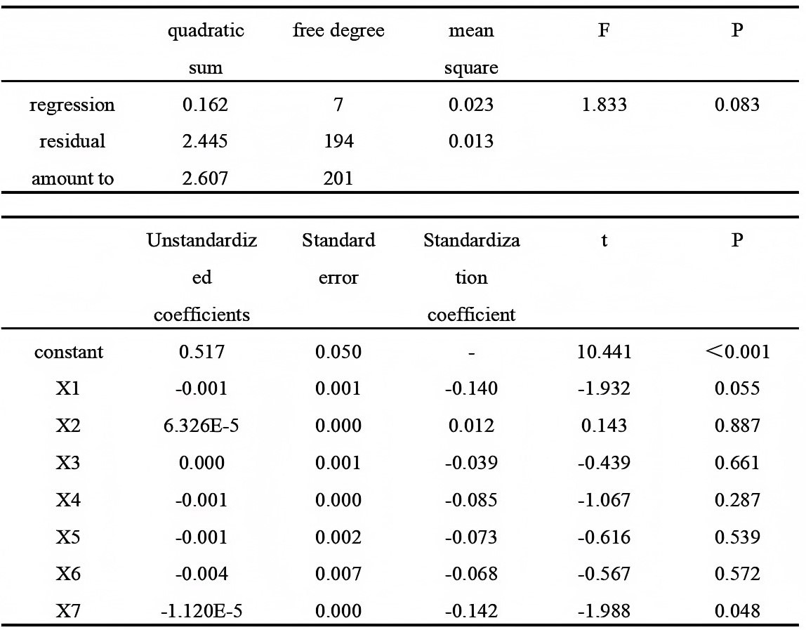 As can be seen from Figure 1, independent variables X1, X2, X3, X4, X5, X6 and X7 do not have statistical significance at the test level of α=0.05. As can be seen from Figure 2, independent variables X1, X2, X3, X4, X5, X6 were not significant at α=0.05 test level, while independent variable X7, that is, Hepatitis B surface antigen (HBsAg), was statistically significant at α=0.05 test level, indicating that HBsAg may be a related factor affecting serum HBsAg. Meanwhile, combined with Table 3.2, it is shown that HBeAg status is an influential factor for serum HBV RNA.