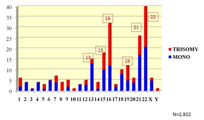| Figure 3:Chromosome specific prevalence of Monosomy and Trisomy Detected in Day-5 Embryos |