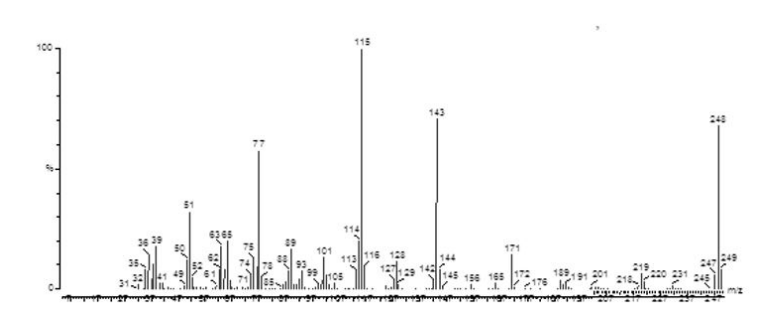M+ 248 (66%, C16H12N2O+), 171 (19%, +C10 H7N2O), 143 (71%, +C10 H7O), 115 (100%, +C9H7), 105(9.2%, +C6H5N2),77(59.9%, +C6H5), 51 (36.2%, +C4H3)