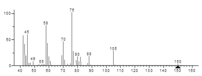 A Perkin-Elmer Clarus-500 gas chromatograph coupled with a mass spectrometer was used. The compound mixture was separated on a fused silica capillary column (HP-5MS) (5% phenyl methyl siloxane), 30 mmx0.32 mm, 0.25 µm film thickness, in a temperature program from 50 (2 min hold) to 250oC (10 min hold) at a heating rate of 8 oC/min. The injector temperature was 250oC and flow rate of 1 mL/min helium gas. The interface which kept the capillary column end into the ion source block was at 280oC.
