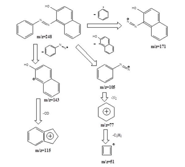 Formation of various fragments on the basis of mass spectrum is shown below
