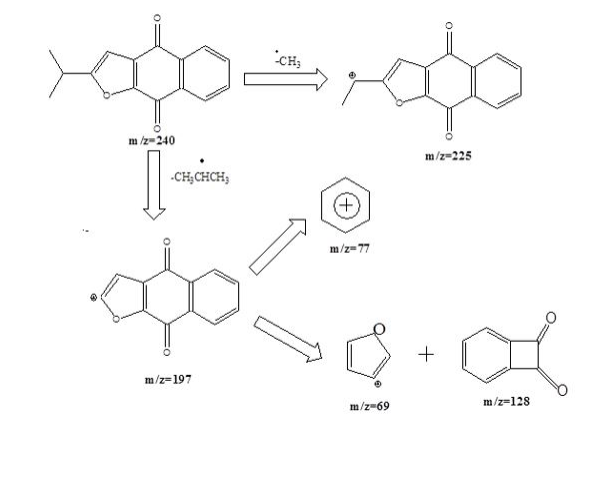 On the basis of these assignments, a possible structure of the compound 2-isopropyl naphtha [2,3-β]furan 4, 9-dione (INFD) is depicted below;