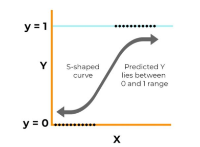 Logistic regression uses a sigmoid function to transform predictions and their probabilities, as shown in Fig 1. The sigmoid function is an S-shaped curve that maps any real value to a range between 0 and 1. The sigmoid function: [15].