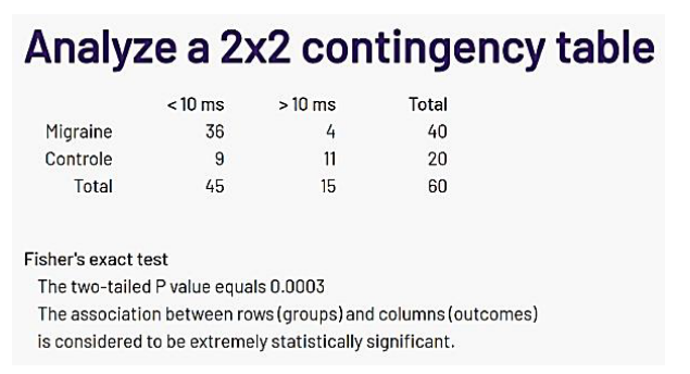 - 36 patients with progression minor than 10 ms in the migraine’s cohort (40 patients)