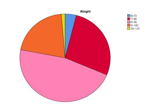 71-80 kg was observed among 41 (27.3%) study subjects. The lowest Wight of obesity is 60-70 which indicate alternative reason that small height participant have low chance of obesity. Following Table 1 and Figure 3 shows the frequency and percentage of said variables.