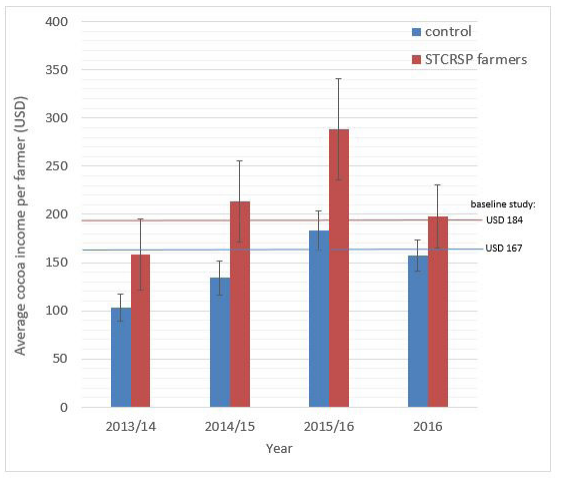 Figure 3: Average cocoa income per farmer, with 95 % confidence intervals |