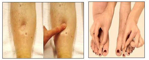 | Figure 5: Postivie Pitting edema (left) and negative stemmer's sign (right) |